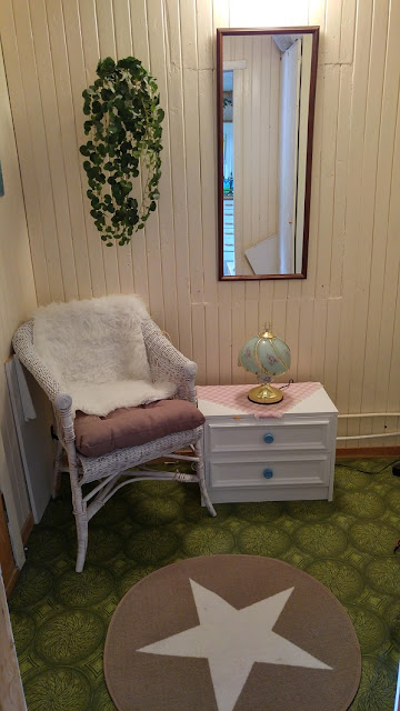 I sommar har vi köpt ny dyna och fäll till korgstolen, ny matta...