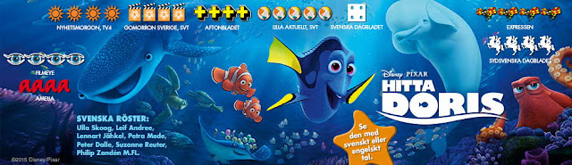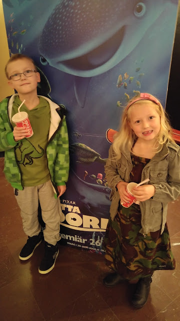 Vi hade först tänkt se "Husdjurens hemliga liv" men ringde i förväg för säkerhets skull och då fanns det bara tre platser kvar utspritt i salongen, så då bokade vi "Hitta Doris" vid 16.00 istället. =)