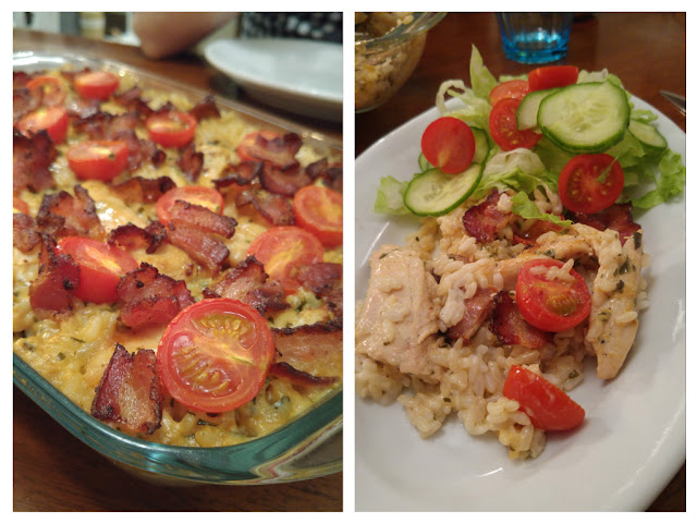 Dagens middag blev jättegod, testade en kycklinggratäng som tillagas "allt-i-ett" med ris i botten. Hittade recept hos Allas men gjorde egna ändringar. Supergod! Även Kiron som ibland kan vara kräsen över ris tyckte det blev så gott med såsen och riset.