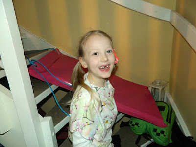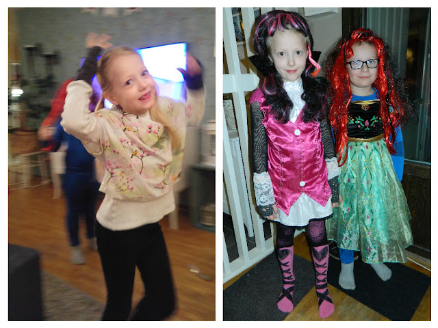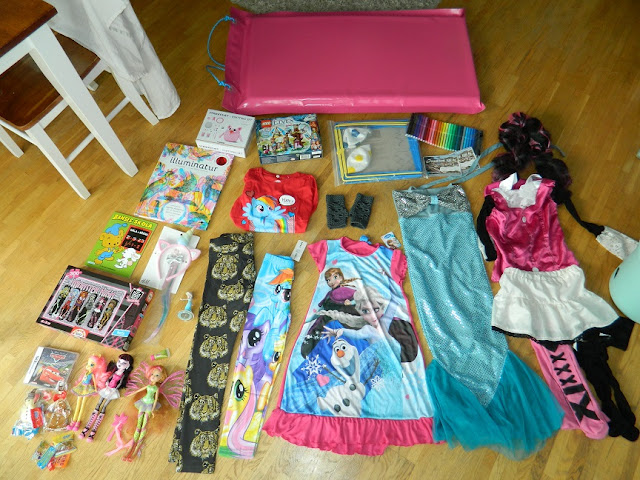 Trött men uppspelt tjej fick sen krypa i säng inom kort. Hon har haft en jättefin dag. Fått så mycket fint och som hon önskat sig, hon har nog svårt att välja favorit av presenterna. ;) Hon fick av oss, familjen Wusch, farfar, Marianne (hon hade lämnat paket förra veckan), mormor & morfar, och morbror Johan med familj: åkmadrass, Lego Elves, pennor, fotbollsspel, stickningskit, pussel, pysselbok, 3D-bok, Nintendo DS-spel, Elsafigur till Disney Infinity, Winx-docka, Equestria MyLittlePony-docka, Monster High-docka, godis, presentkort på Kramfors Handel, kläder och utklädningskläder både hempysslat och köpt. Tack allihop för jättefina presenter!!