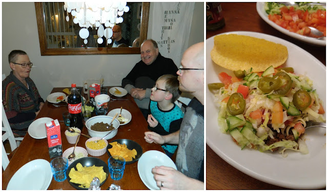 När de andra åkt blev det tacos som Tiril önskat till middag, med mina föräldrar.
