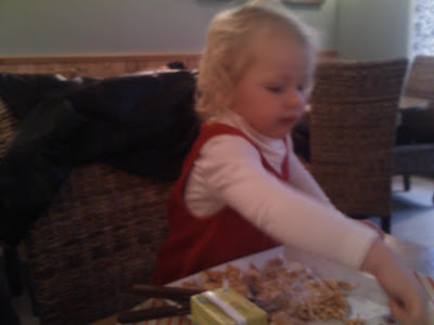 Nu har vi ätit mys-frukost/brunch med gröt, mackor och ägg och ska nu åka iväg till Sandslån för att fira farfar Roger!