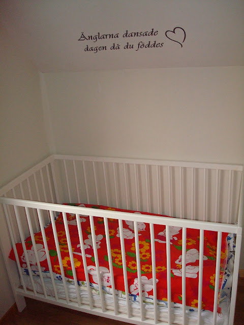 Och på Tradera hittade jag ett vägg-ord till Tiril, skulle köpt för längesen men inte kommit till skott. Men nu pryder det snedtaket ovanför hennes säng. Önskar det stod "natten" istället för "dagen men annars passar det så fint.