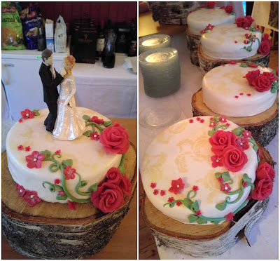 Brudparet hade själva sytt sina och brudföljets kläder, samma mönster i alla plaggen men i olika färger. Mönstret gick även igen på tårtorna!