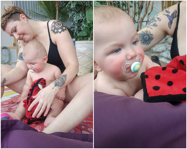 Vi mötte upp Theres syster Erika med familj på badet, och minstingen Vilgot fick också plaska mycket i babypoolen. Sån sötnos!!