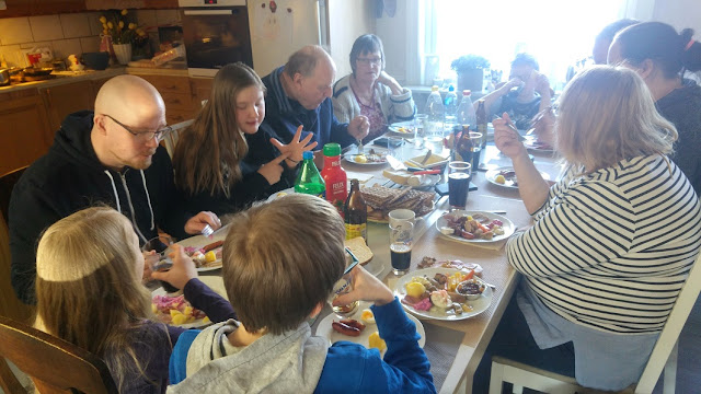 På annandag påsk var jag ledig och det var dags för mer påskfirande. =) Traditionell middag hos mina föräldrar, med syster Anki och bror Johan med familj.