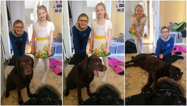 Vi firade ju också lite påsk! På skärtorsdagen fick Tiril ha sin fina påskkjol jag sytt för nåt år sen. =) Vi var den dagen hundvakt till finaste Nikki också. ;)