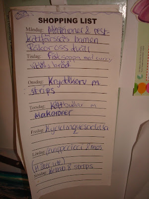 Förra veckans matsedel kan ni se här, det mesta stämmer men lite si och så med matlagningsorken då...
