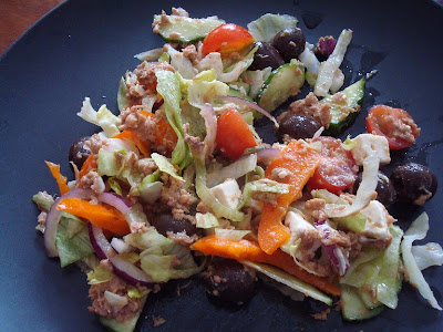Mattias hade glömt ta fram kycklingfilé ur frysen så det blev istället snabbhandling direkt efter vi hämtat barnen, och sen hem med enkel snabb och god middag, tonfisksallad! Mmmm!