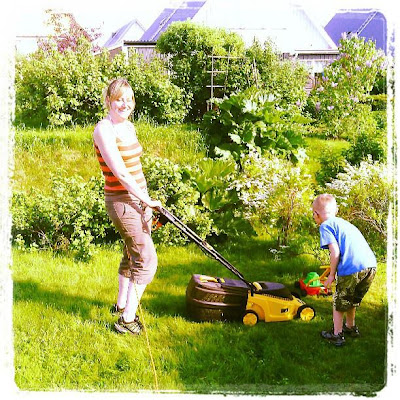 Sen brände jag åtminstonde några kalorier genom att klippa gräsmattorna och vattna rabatter, med lite hjälp av Kiron!