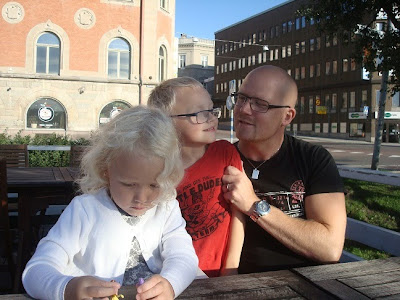 På väg hem märktes det att Kiron var trött för han blev lite överstojig, men knatade på ganska duktigt. Och Tiril hon somnade, vi hade tagit sulkyn med oss. ;)