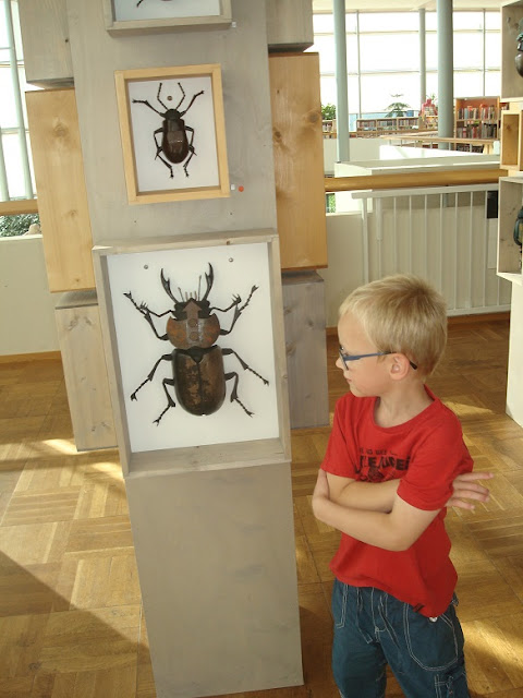 Blev ett stopp på bibblan också, där vi kikade på skalbagge-konstutställningen de har, Kiron har varit där tidigare med förskolan och kikat. Häftiga skalbaggar i metall och trä m.m! =) Vi lånade hem två intressanta insektsböcker och hyrde också två Wii-spel för en vecka. ![]()