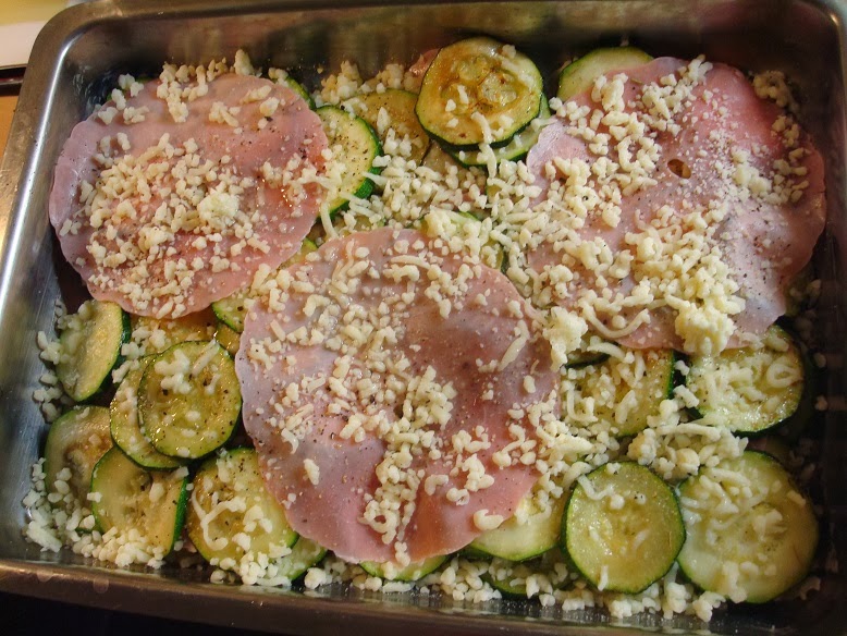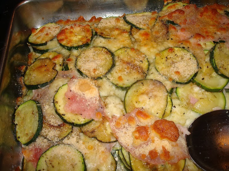 GRATINERAD SQUASH MED SKINKA OCH MOZZARELLA/ ZUCCHINE CON PROSCIUTTO E MOZZARELLA