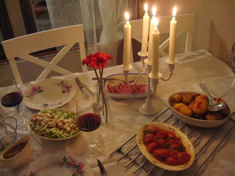 Och på alla hjärtans dag åt vi Hasselbackspotatis, kantarellsås och Lågtempererad rostbiff (på fransyska, jag är inte så förtjust i nötkött i vanliga fall, förutom mammas, men detta var i alla fall det bästa jag själv tillagat ;) ), med tomater (som blev jättegoda)! Lagade enligt detta recept från Arla: