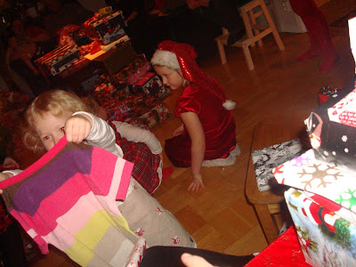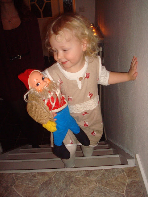 Tiril var "mammig" mot moster Marias gamla tomte. I sin julklappsklänning. =)