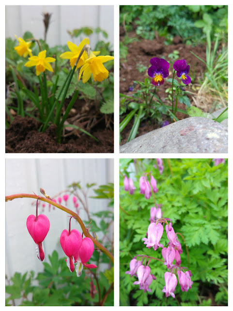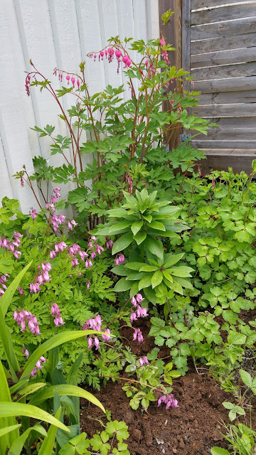 Titta vad fint det börjat växa mina rabatter nu. =) "Ogräs" som styvmorsviol, och perenner, även om det mesta ännu inte slagit ut eller knappt ens kommit. Mina favoritperenner är nog Löjtnantshjärtan, och även Fänrikshjärtan.